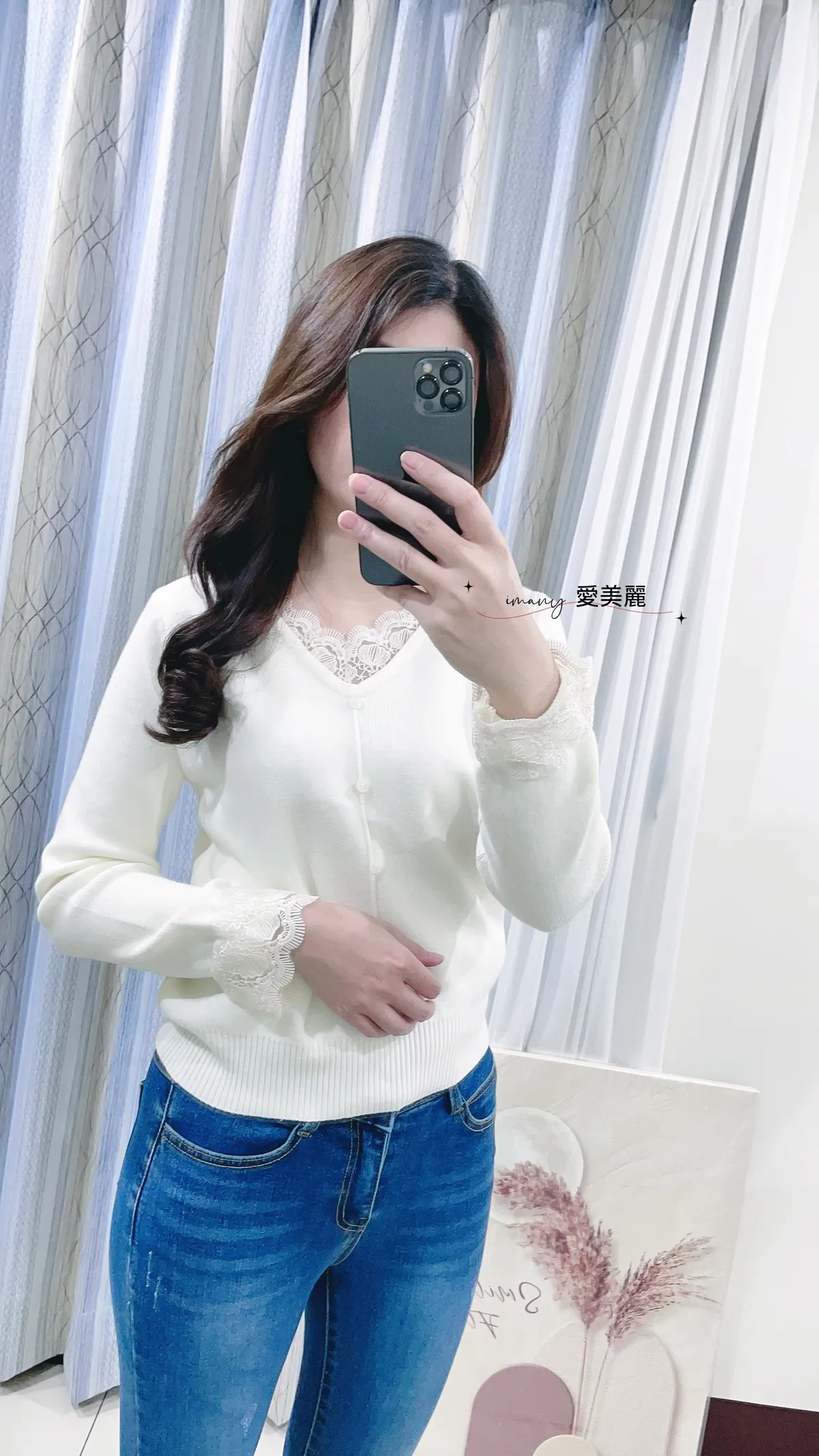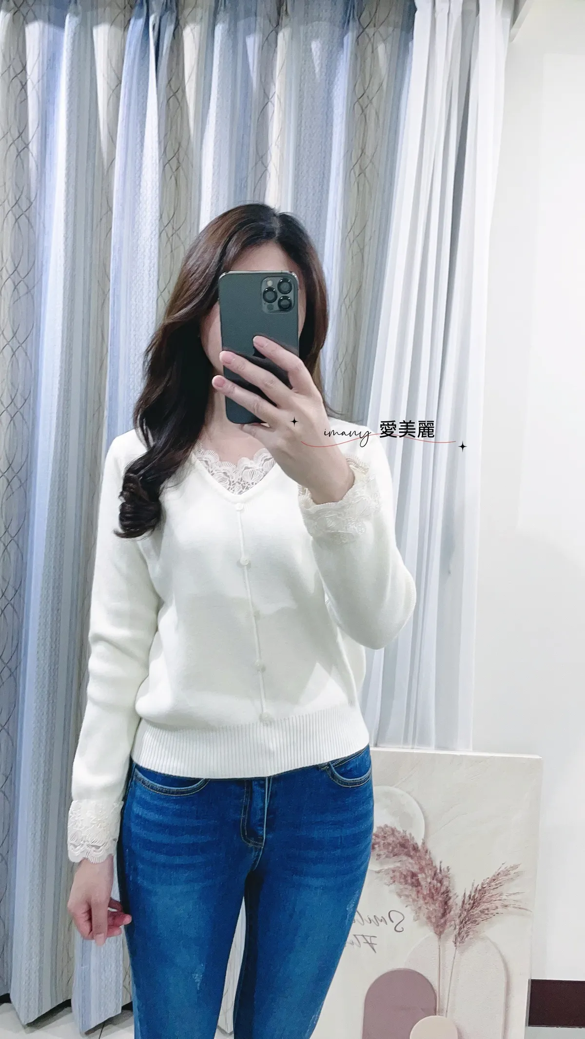 緹花V領針織上衣